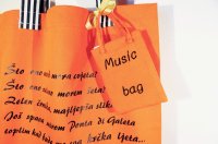 2 Šarene platnene torbe s otisnutim tekstovima pjesama na temu otoka Krka ili tekstovima krčkih pjesnika i glazbenika